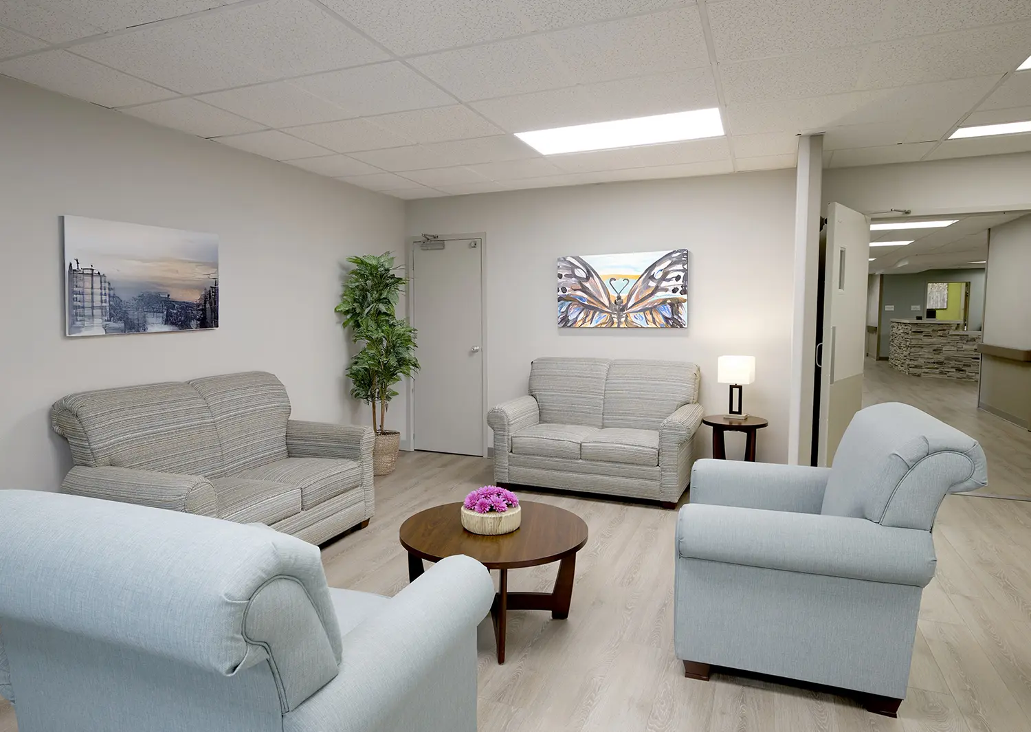 Gallery (701) 237-3030 1315 S University Dr,Fargo, ND 58103 (701) 237-3030 1315 S University Dr,Fargo, ND 58103 Reception Receiving Area Hallway Altar Dining Area Occupational Therapy Room Patient’s Room